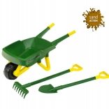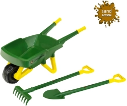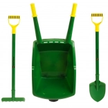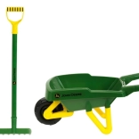 Lahka, a stabilna otroška samokolnica v barvah JOHN DEERE zmore pesek, prst in listje ter spodbuja naravno gibanje na prostem.
