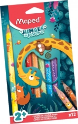 Komplet 12 robustnih barvic Maped Jungle Fever Jumbo je zasnovan posebej za otroke že od 2 let. Te barvice odlikuje trikotno ohišje, ki otrokom pomaga pri lažjem prijemu in razvijanju pravilnega držanja pisala. Mehka in trpežna mina zagotavlja izrazit barvni rezultat na papirju, hkrati pa je odporna proti lomljenju.