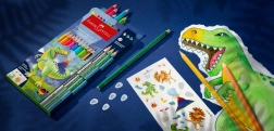 Barvice odlikujejo intenzivne, briljantne barve in enakomerno nanašanje barv za preprosto senčenje. Zahvaljujoč SV lepljenju so mine zelo odporne proti lomljenju. Del kompleta je prostor za imensko nalepko ter set nalepk z motivom dinozavrov, ki bo razveselil vsakega malega ustvarjalca.