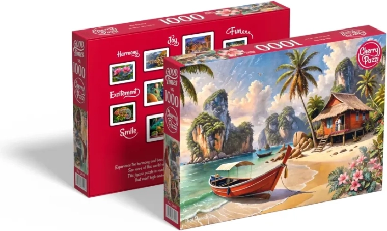 Odkrijte čar Tajske s sestavljanko »Tajski raj« s 1000 koščki! Ta sestavljanka ponuja ne le sproščujoč način preživljanja časa, temveč po dokončanju tudi čudovit pogled na fascinantno tajsko pokrajino.