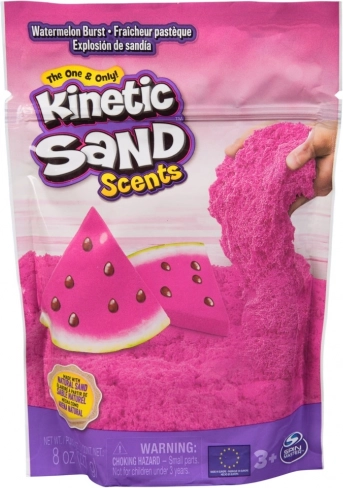 Neonsko rožnat Kinetic Sand Watermelon Burst čudovito diši po lubenici in spodbuja domišljijo pri igri.