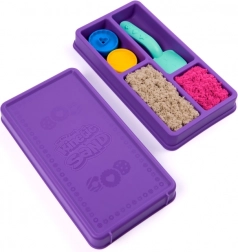 Pesek je izdelan iz naravnega materiala, ostal bo skupaj in se zlahka pospravi. Ne izsuši se, zato se lahko k ustvarjanju vedno znova vračate. Zapiralno vijolično ohišje ohranja pesek in orodja pregledno na mestu – idealno za na pot ali v otroško sobo.