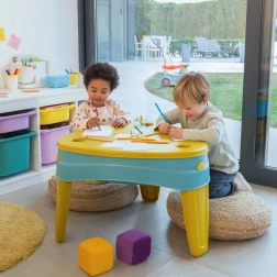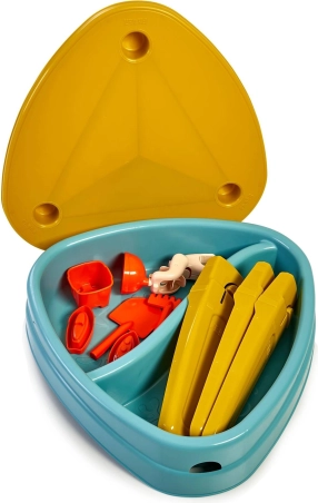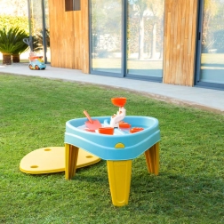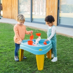 Konstrukcija z močnejšimi nogami zagotavlja visoko stabilnost, zaobljeni robovi pa varno uporabo tudi za najmlajše. Kakovostna plastika z UV-zaščito ohranja žive barve dolgo časa. V paketu najdete tudi 5 uporabnih dodatkov za kopanje, zajemanje in vodne eksperimente.