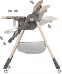 Z 4 kolesci stolček brez napora prestavite iz kuhinje v dnevno sobo. Po uporabi ga zložite na varčen format, koš pod sedežem pa sprejme igrače in dodatke.
