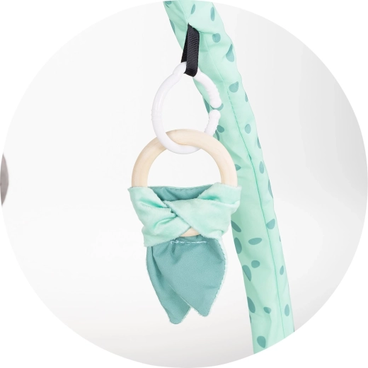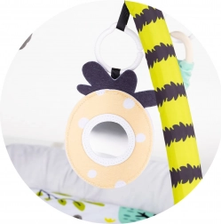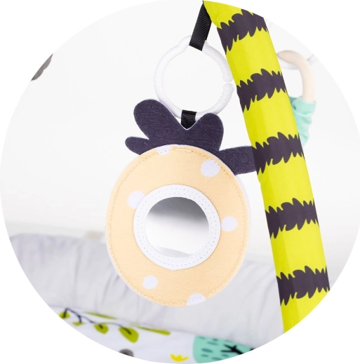 Interaktivno območje s plišastimi igračami, ropotuljicami in ogledalcem motivira dojenčka k seganju, prijemanju in sledenju, s čimer krepi koordinacijo in vidno zaznavanje.