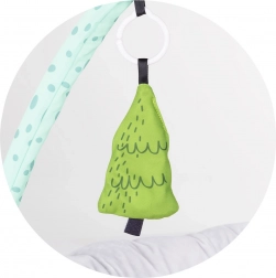 Odkrijte čarobne gozdne motive in nežne teksture, ki spodbujajo naravno radovednost dojenčka. Igralna podloga CHIPOLINO s premerom 91 cm ustvari prijeten in varen prostor za prve raziskave, »pase konjička« ter igro na hrbtu in trebuščku. Dva stabilna loka nosita pet visečih igrač – ogledalce, ropotuljice in mehke plišaste prijatelje – ki vabijo k prijemanju in razvijajo fino motoriko.