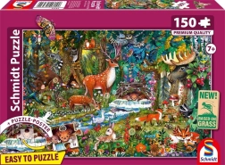 Puzzle Gozdna živalca prinaša ure zabave za otroke in odrasle, sestavljen iz 150 pisanih kosov.