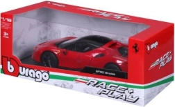 Model nosi uradno licenco FERRARI in je v privlačni embalaži BBURAGO Race & Play z okencem – idealen kot darilo za ljubitelje hitrih avtomobilov.