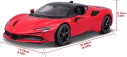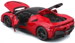 Uživajte v vrhunski izdelavi modela FERRARI SF90 STRADALE v izvedbi BBURAGO. Kovinska karoserija die‑cast s plastičnimi detajli, funkcionalni odpiralni elementi in verne proporcije prinašajo realističen vtis tako v otroško sobo kot v zbirateljsko vitrino.