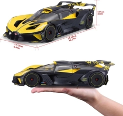 Odkrijte zvesto repliko revolucionarnega supersporta BUGATTI BOLIDE v precizni izvedbi. Kovinska die-cast karoserija, realistična razmerja in kontrastno rumeno-črno lakiranje poudarjajo agresivne aerodinamične linije, zaradi katerih model izstopa v vsaki zbirki.