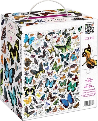 Podajte se na pot med krili pisano obarvanih metuljev in odkrijte znane in eksotične vrste z različnih koncev sveta. Ta kakovostna sestavljanka prinaša prijet izziv za otroke, mladostnike in odrasle ter pomaga razvijati potrpežljivost, logiko in zaznavanje podrobnosti.