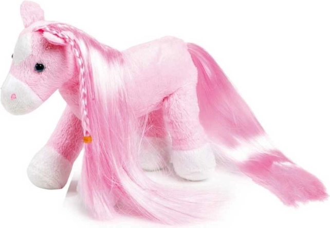 Ta rožnati plišasti ponij v elegantni torbici je odličen spremljevalec za igro in potovanja. Dolga griva in rep kar vabita k česanju in ustvarjanju kitk, medtem ko mehko telesce poskrbi za udobno crkljanje. Idealno darilo za otroke, ki imajo radi konjičke in čarobne zgodbe.