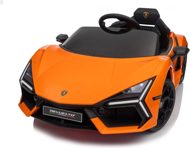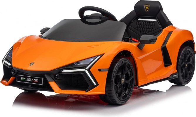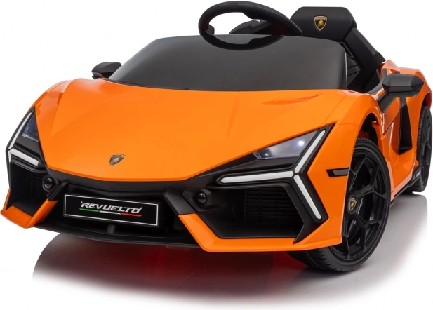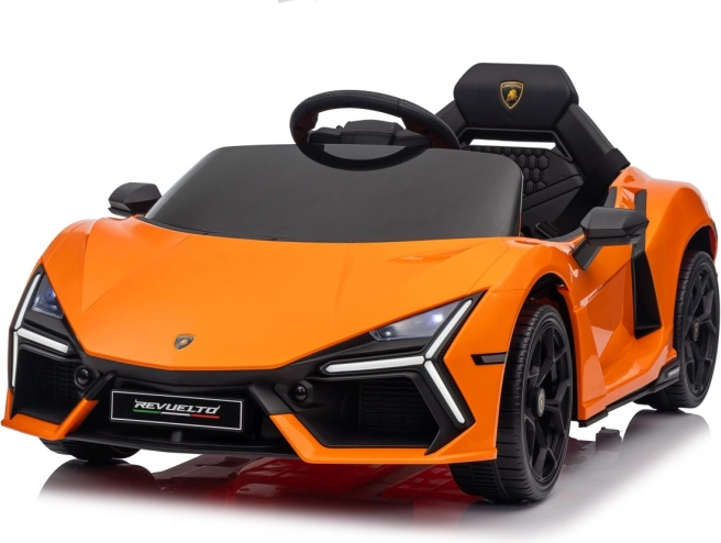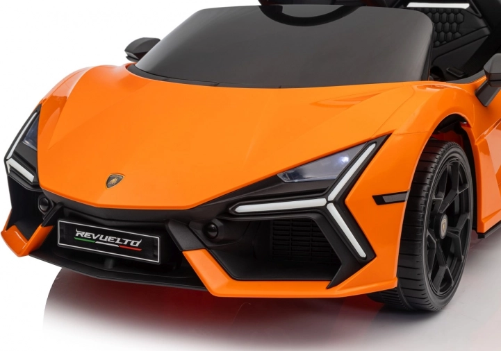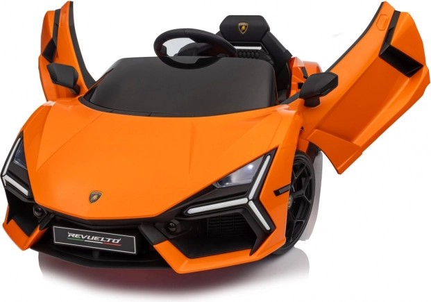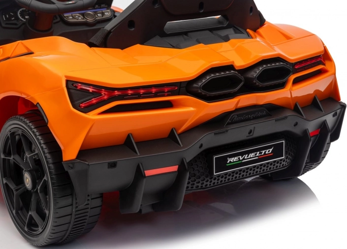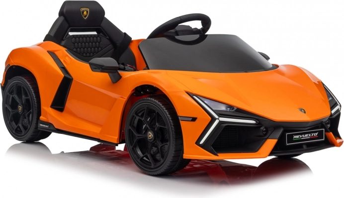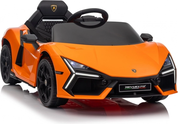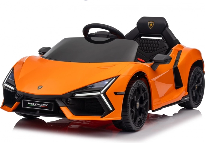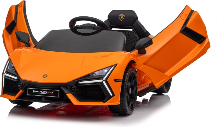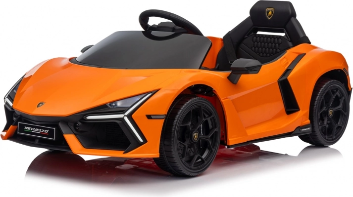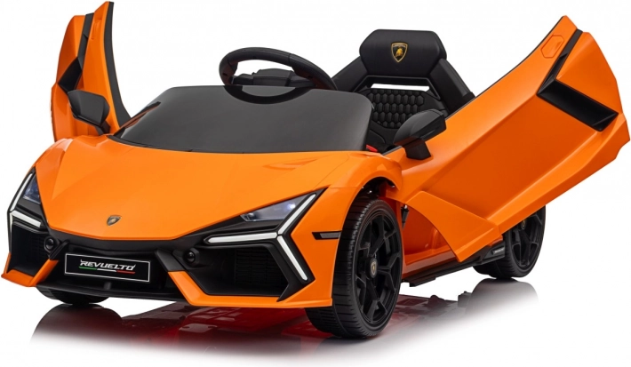 Avtomobilček, navdihnjen z LAMBORGHINI REVUELTO, navdušuje z ostrimi linijami, značilnimi emblemi in ikoničnimi navzgor odpirajočimi se vrati za lahek vstop.