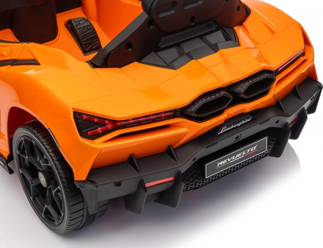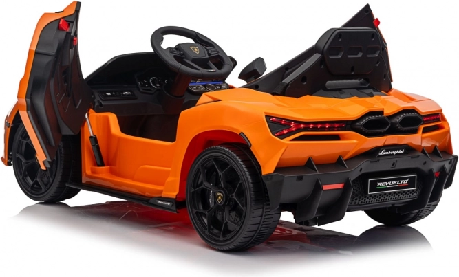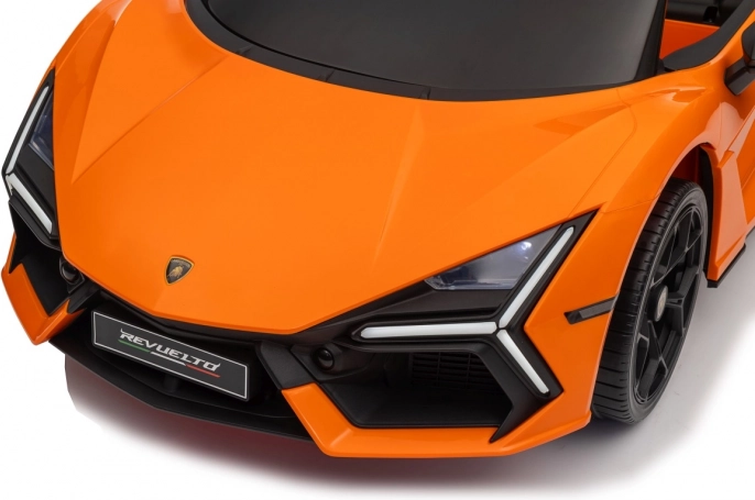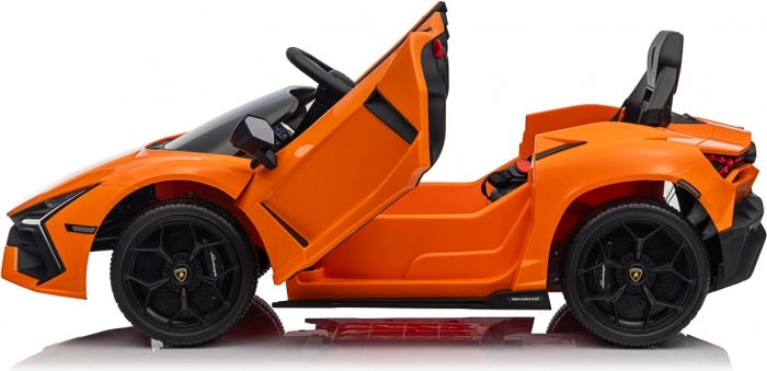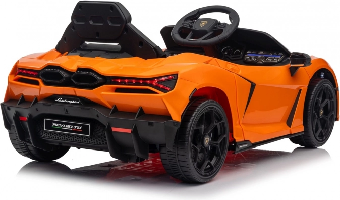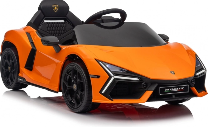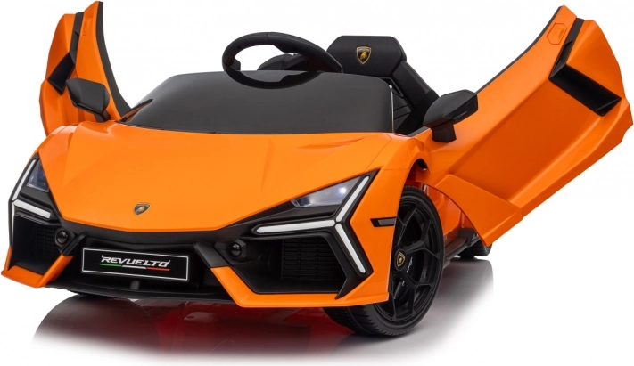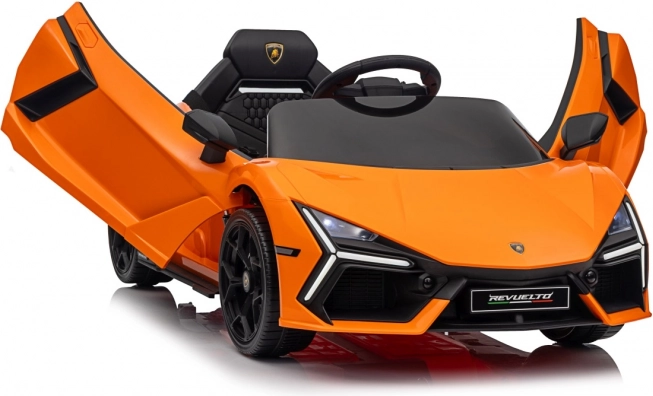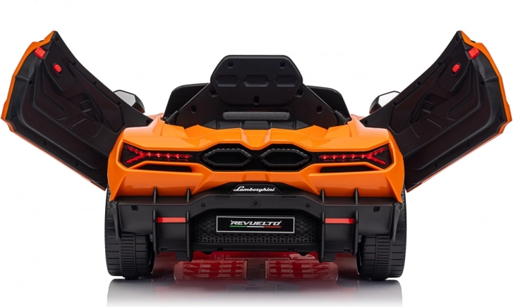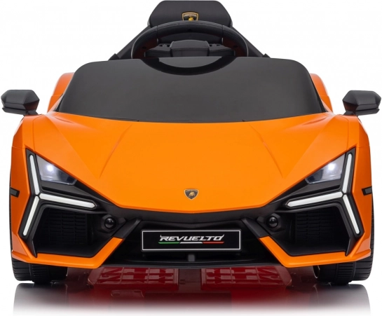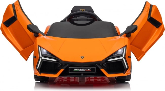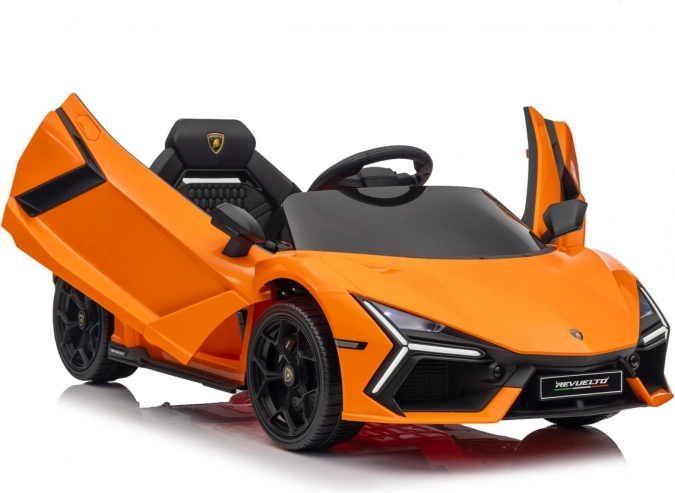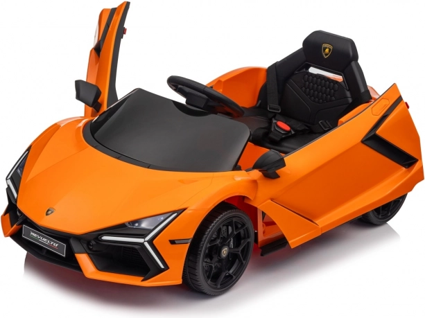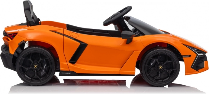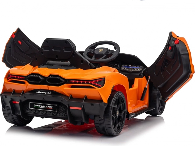 Avtomobilček, navdihnjen z LAMBORGHINI REVUELTO, navdušuje z ostrimi linijami, značilnimi emblemi in ikoničnimi navzgor odpirajočimi se vrati za lahek vstop.