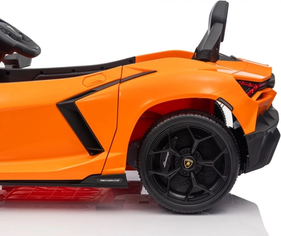 Stilski otroški električni avtomobil iz delavnice LAMBORGHINI prinaša ikonični dizajn Revuelto v kompaktni in varni obliki za male voznike. Dva motorja do 2×45 W (na voljo tudi varianta 2×35 W) poskrbita za gladek spelje in dve hitrosti naprej in nazaj, medtem ko zadnje vzmetenje blaži neravnine.