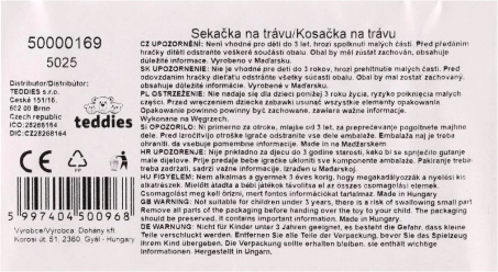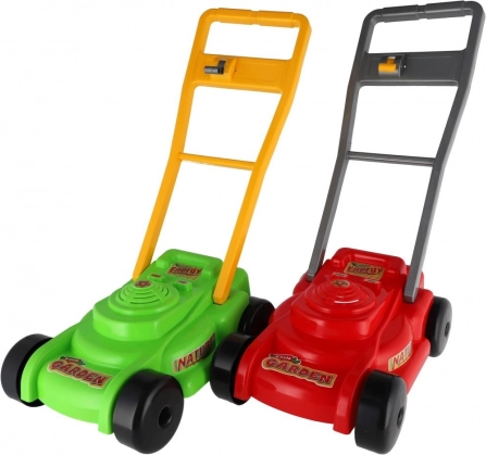 Ta otroška kosilnica verno posnema pravo kosilnico in vsako dvorišče spremeni v avanturistično igrišče. Zaradi lahke plastične konstrukcije se zlahka potiska, ima stabilna štiri kolesa in zložljiv ročaj za priročno shranjevanje. Lažni zaganjalnik in premična ročica omogočata realistično igro brez nevarnih funkcij.