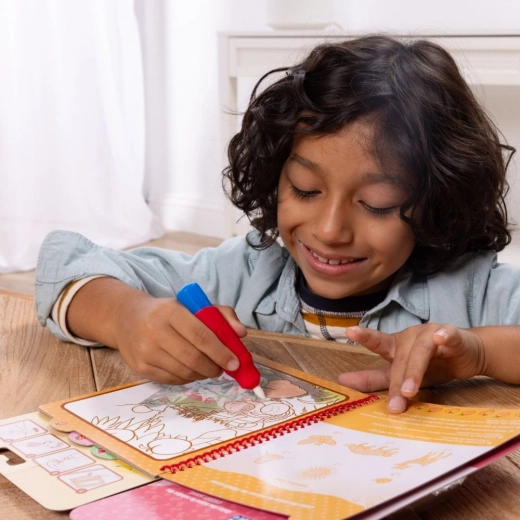Odkrijte zabavno in čisto barvanje z vodnimi pobarvankami Water WOW!. Dovolj je, da pero napolnite z vodo in barve se čarobno pojavijo na straneh s motivi sadra – poleg tega z prijetnim vonjem. Idealno za na pot, v restavracijo ali v avto: brez nereda, večkrat uporabno in primerno za otroke od 3 let.