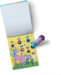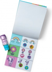 Sticker WOW! prinaša preprosto in čisto žigosanje brez nereda. Ergonomski žig je idealen za majhne otroške roke, dopolnjuje pa ga barvita knjižica s stranmi, polnimi samorogov, zvezdic in veselih motivov. Vsak odtis spodbuja ustvarjalnost in podpira osredotočenost.