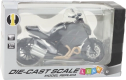 Ta natančno izdelan model združuje robustno kovinsko ohišje s plastičnimi detajli, ki poudarijo realistične linije, izpuhe, kolute in teksturiran sedež. Vgrajena luč in zvok (3× AG13, priloženo) še okrepita doživetje pri igri ali predstavitvi na stojalu.