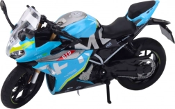 Ta moder športni motocikel v merilu 1:12 izstopa po natančni izdelavi in čvrsti kovinski konstrukciji. Realistični proporci, verni detajli in kakovosten tisk ga naredijo odličen kos za vitrino in privlačno igračo za igro. Vgrajeni svetlobni in zvočni efekti poudarijo vtis prave vožnje.