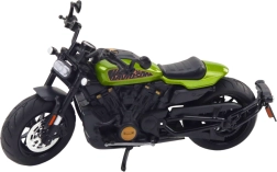 Ta natančno izdelan model chopperja v merilu 1:12 združuje kovinski okvir s trpežnimi plastičnimi elementi za dolgo življenjsko dobo in avtentičen videz. Črna izvedba z zelenimi detajli daje motociklu izrazit karakter, ki pritegne v vsaki zbirki ali kot stilska dekoracija.