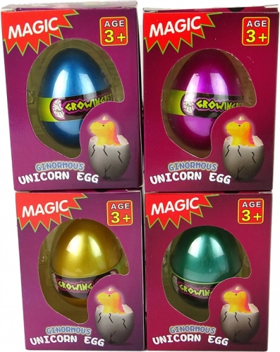 Odkrijte čarobno preobrazbo s tem zabavnim eksperimentom: jajce položite v vodo in opazujte, kako se v nekaj dneh izvali sijoči samorog. Igrača je na voljo v 4 veselih barvah in je primerna za otroke od 3 let. Odlično darilo, ki razvija potrpežljivost, radovednost in prinaša veliko veselja ob opazovanju.