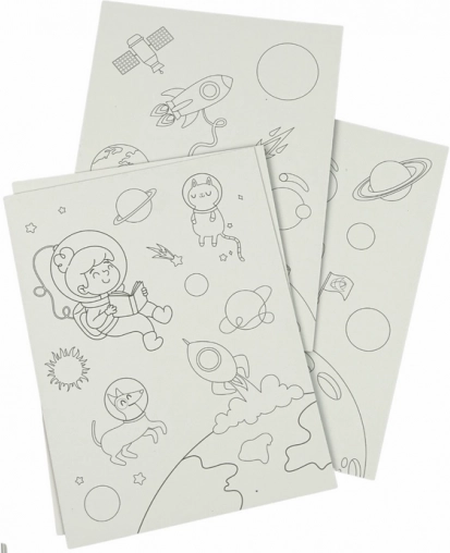 Vsaka slika ima praktičen format za enostaven oprijem, priložena lesena lopatica pa omogoča udobno in varno uporabo. Odlično za doma, na poti in kot kreativno darilo za male ljubitelje vesolja.