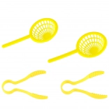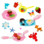 Vsebina paketa: Komplet vsebuje 12 stekleničk gela različnih barv, 24 modelčkov, lonček s kalcijevimi laktati, 4 krožničke, 4 pladnje, 2 cedilci, 2 kleščici, 1 skodelico s pokrovom za interaktivne igre in drugo.