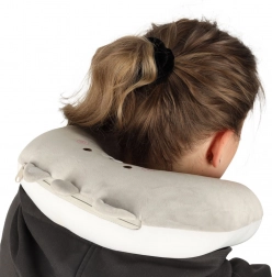 Blazina je zasnovana za maksimalno udobje vaših otrok, podpora glave in vratu je zagotovljena z ergonomskim oblikovanjem, ki prispeva k pravilni drži telesa. Kompakten dizajn omogoča enostavno prenašanje, bodisi v nahrbtniku bodisi pritrjenega na prtljago s praktičnim klipom.