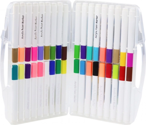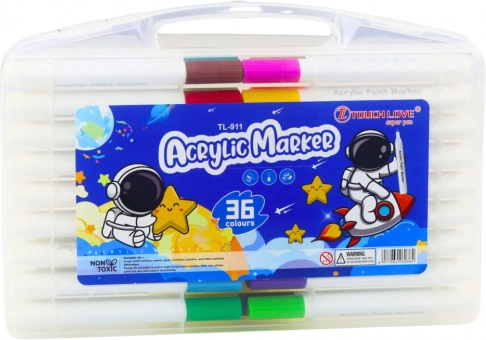 Set akrilnih flomastrov je idealno orodje za vsakega mladega umetnika in ljubitelja umetnosti. Visokokakovostni flomastri v 36 intenzivnih barvah omogočajo ustvarjanje izjemnih umetniških in dekorativnih projektov. Zaradi akrilne sestave črnila so barve odporne na bledenje in obrabo ter dobro prekrivajo različne površine, kot so papir, lepenka, les, plastika ali steklo. Močna pigmentacija zagotavlja, da postane vsak risarski motiv izrazit in barvit, zato so odlični tako za vsakodnevne skice kot za profesionalna umetniška dela.
