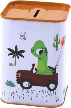 Kovinska hranilnica z motivom dinozavra je zasnovana za male varčevalce. Trdna izdelava zagotavlja varno shranjevanje kovancev in dolgo življenjsko dobo, medtem ko igriv dizajn lepo dopolni opremo otroške sobe.
