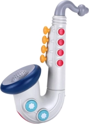 Saksofon je opremljen s posnetimi pesmimi in aktivnimi tipkami, ki ponujajo igranje v različnih načinih. Zahvaljujoč zvočnim in svetlobnim učinkom se vsak nastop spremeni v mini koncert, ki očara vso družino. Intuitivni gumbi in preprosto upravljanje naredijo instrument dostopen tudi najmlajšim glasbenikom.