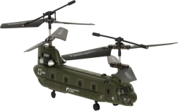 Model, navdihnjen s vojaškim transportnim helikopterjem, ponuja stabilen let, dobro vodljivost in privlačen videz v zeleno‑črni izvedbi. Upravljalnik z ergonomskimi ročicami dobro leži v roki tudi mlajšim pilotom, zato se hitro naučijo osnov upravljanja. Robustna plastika zdrži manjše padce, dolgi rotorji pa prispevajo k mirnejšemu letu.
