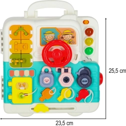 Izboljšajte spretnosti svojega otroka s to Montessori senzorično tablo, ki združuje zabavo in učenje v praktičnem kovčku. Tabla je zasnovana za spodbujanje otrokovega zaznavanja ter razvoj fine motorike in logičnega razmišljanja.