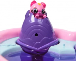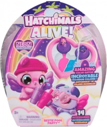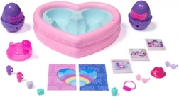 Potopite jajčka v bazenček v obliki srca, odstranite krilca in počasi dolivajte vodo – ko obe polovici srca spremenita barvo, se vaši Hatchimals izvalijo. Z dodatkom več vode se barve zlijejo v vijolično in ustvarijo učinkovit neonski videz. Čarobno izleganje v vodi s spremembo barve vsako igro spremeni v edinstveno doživetje.