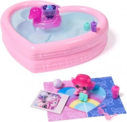 V pakiranju vas čakata 2 figurici Puppadees, ki ju lahko zložite v prisrčno pozo, ter veliko opreme za popolno bazensko zabavo: flamingo, plažna žoga, očala, kartice in tekstilne brisače, ki se zložijo v obliko srca. Po igri set temeljito osušite in pripravljen je na nova doživetja.