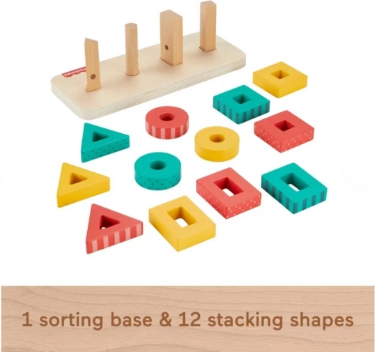 Leseni sortirnik oblik FISHER-PRICE je varna in trpežna izobraževalna igrača, navdahnjena s principi Montessori. Otroci razvrščajo in natikajo pisane trikotnike, kroge, pravokotnike in kvadrate na pripravljeno osnovo ter tako naravno urijo koordinacijo oko–roka, zbranost in zaznavanje barv ter oblik.