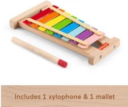 Glasbilo pomaga razvijati koordinacijo oko–roka, fino motoriko in slušno zaznavanje. Del paketa sta 1 ksilofon in 1 paličica, tako da lahko otroci začnejo igrati takoj. Primerno za otroke od 2 let.