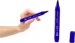 Univerzalen trajni marker z intenzivnim modrim črnilom in vodoodporno, hitrosušečo formulo. Zahvaljujoč poševno prirezanemu vrhu 2,5–4,5 mm ustvarja tanke in debele črte na papirju, kartonu, plastiki, steklu, kovini in lesu. Idealno za pisarno, delavnico in gospodinjstvo.