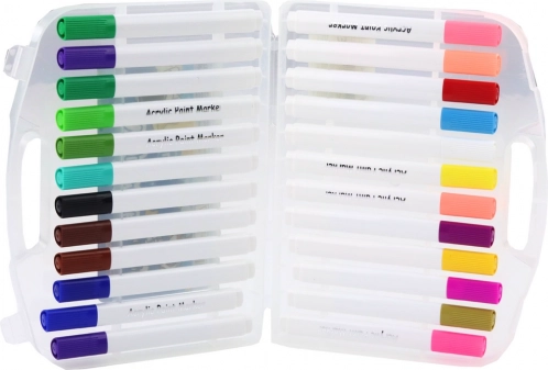 Set akrilnih markerjev je odlično orodje za vse, ki imajo radi umetnost, tako za otroke kot za odrasle. Praktični organizator v obliki prenosnega etuija olajša shranjevanje in prenašanje celotnega seta, kar ga naredi idealnega za uporabo doma, v šoli ali na prostem.
