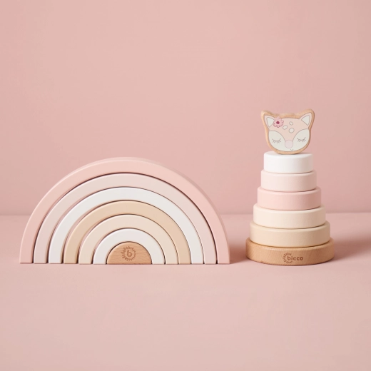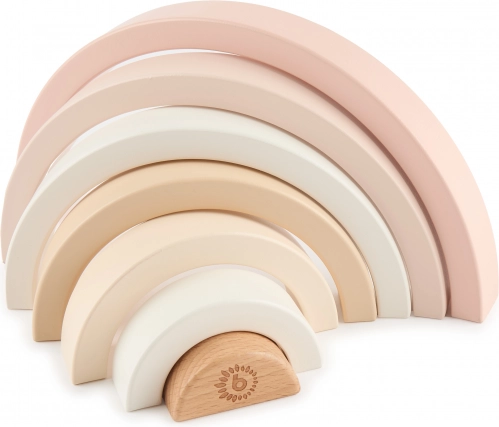 Ta minimalistična lesena mavrica bo postala priljubljena igrača in hkrati dizajnerski dodatek otroške sobe. Otroci lahko loke zlagajo, razvrščajo, gradijo mostove in tunele ali jih uporabijo kot hišice in ograde za figurice. Preproste oblike spodbujajo domišljijo in samostojno igro.