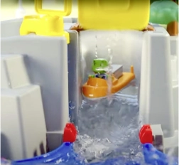 - VELIKA VODNA STEZA V OBLIKI GORSKEGA JEZERA: 69-delno zabaviščno središče z goro in vodnim zbiralnikom na vrhu; slap služi kot tobogan za priložene čolne in figurice.
