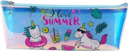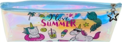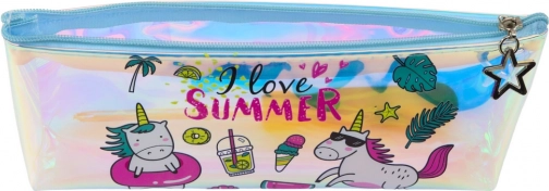 Ta očarljiv peresnik prinese poletne pustolovščine naravnost v vašo torbo. Živahne barve in holografski lesk iz tega peresnika ustvarijo modni kos, ki pritegne pozornost kjerkoli ga vzamete s seboj. Zaradi prosojne zasnove zlahka vidite, kaj je v notranjosti, medtem ko holografski motivi samorogov in napisi 'I love SUMMER' prinašajo veselje in domišljijo.