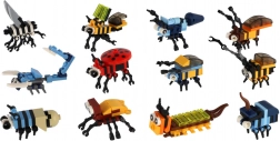V pakiranju najdete mešanico raznolikih hroščev in drugih drobnih bitij, ki jih je mogoče poljubno kombinirati. Koščki so kompatibilni v okviru seta, zato nastajajo edinstvene kombinacije in vedno novi navdihi za ustvarjalno igro.