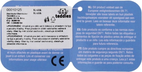 Dvobarvna izvedba, dolga ušesca in izrazite očke naredijo zajčka ljubkega prijatelja za igro in pomiritev.