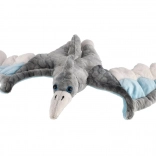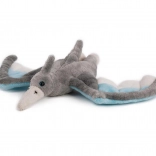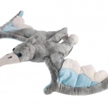 Ta nežen pterozaver navduši z razpetimi krili v sivi barvi z modrimi in svetlimi detajli. Je prijetno puhast, lahek in odlično sede v male ročice. Zaradi prijaznih materialov je primeren kot prvi pliškotek in bo hitro postal najljubši prijatelj za spanje in na poti.