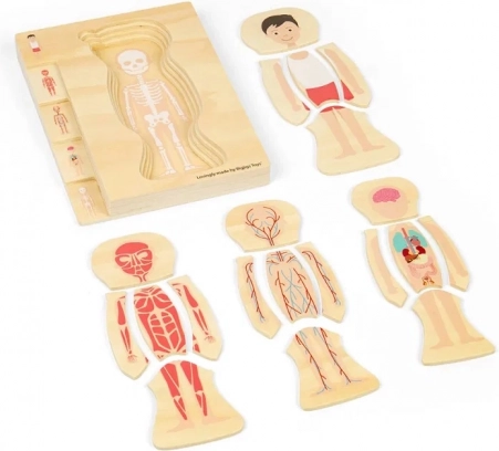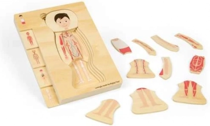 Ta izobraževalna sestavljanka predstavlja anatomijo dečka v več plasteh – od okostja, preko mišic do organov. Otroci si interaktivno osvojijo osnove človeške anatomije ter hkrati urijo potrpežljivost in prostorsko predstavo.