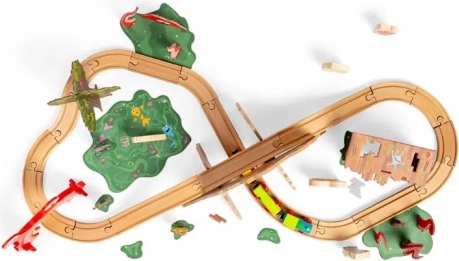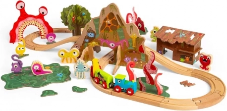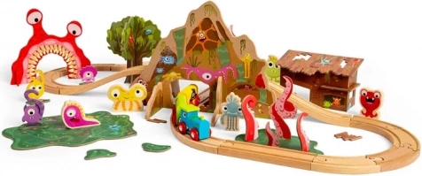 Ta barvita železniška proga s pošastmi spremeni vsak prostor v zabaven svet domišljije. Otroci si zgradijo lastno progo s tunelom in mostom, se z lokomotivo popeljejo mimo raznolikih bitij ter si izmišljajo neskončne zgodbe. Set je idealen za razvoj fine motorike, koordinacije oko–roka in socialnih veščin pri igri s prijatelji.