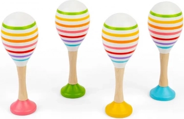 Odkrijte veselje do glasbe z otroškimi rumba kroglicami BIGJIGS TOYS v setu 2 kos. Zahvaljujoč lesenemu dizajnu s certifikatom FSC in igrivemu črtastemu videzu so idealne za majhne roke. Oddajajo nežen rožljajoč zvok, ki spodbuja senzorični razvoj, razvija motoriko, oprijem in koordinacijo oko–roka. Izdelano iz varnih in nestrupenih materialov. Cena velja za set 2 kos.