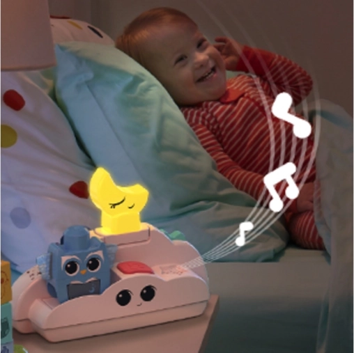 Večerni način ponudi pomirjujoče uspavanke, umirjene svetlobne učinke in projektor zvezd za prijetno uspavanje. Jutranji način polepša dan z optimističnimi pesmicami, zvoki narave in svežimi svetlobnimi vzorci. Zaradi enostavnega upravljanja in robustnih kock je set idealen za malčke.